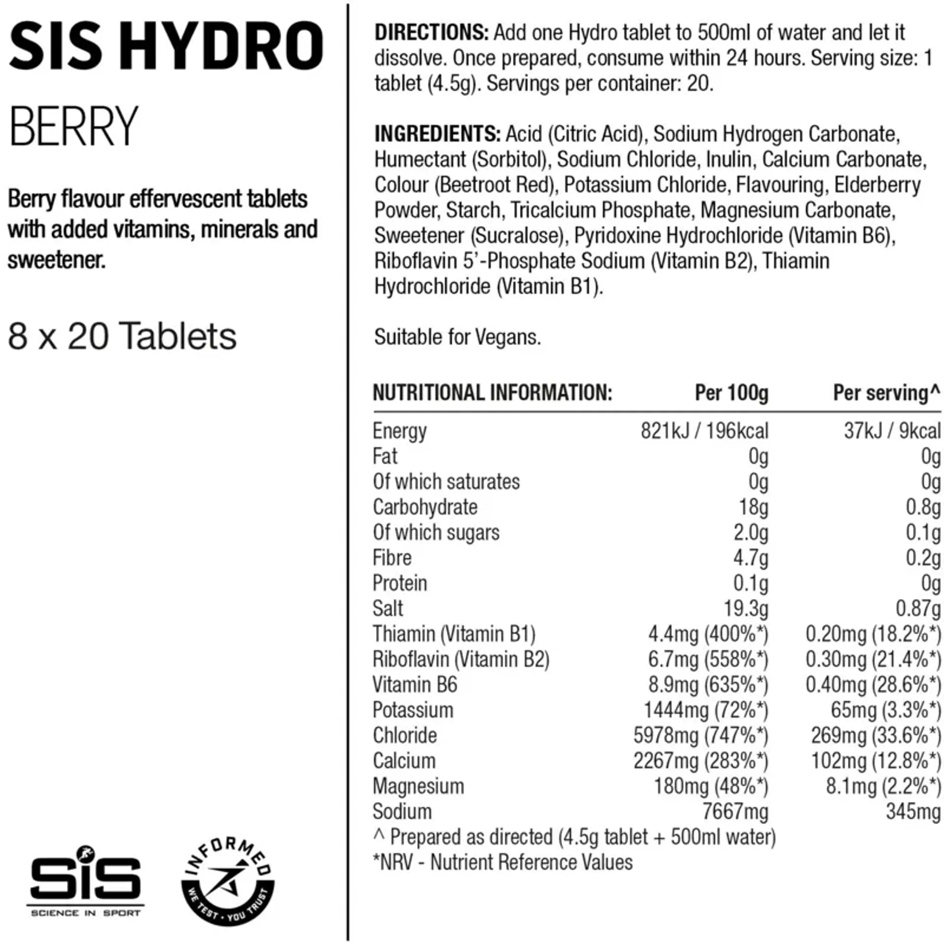 Hydro is designed to ensure you are effectively hydrated to produce your best performance. As an effervescent tablet that readily dissolves in plain water, it represents a highly practical approach.