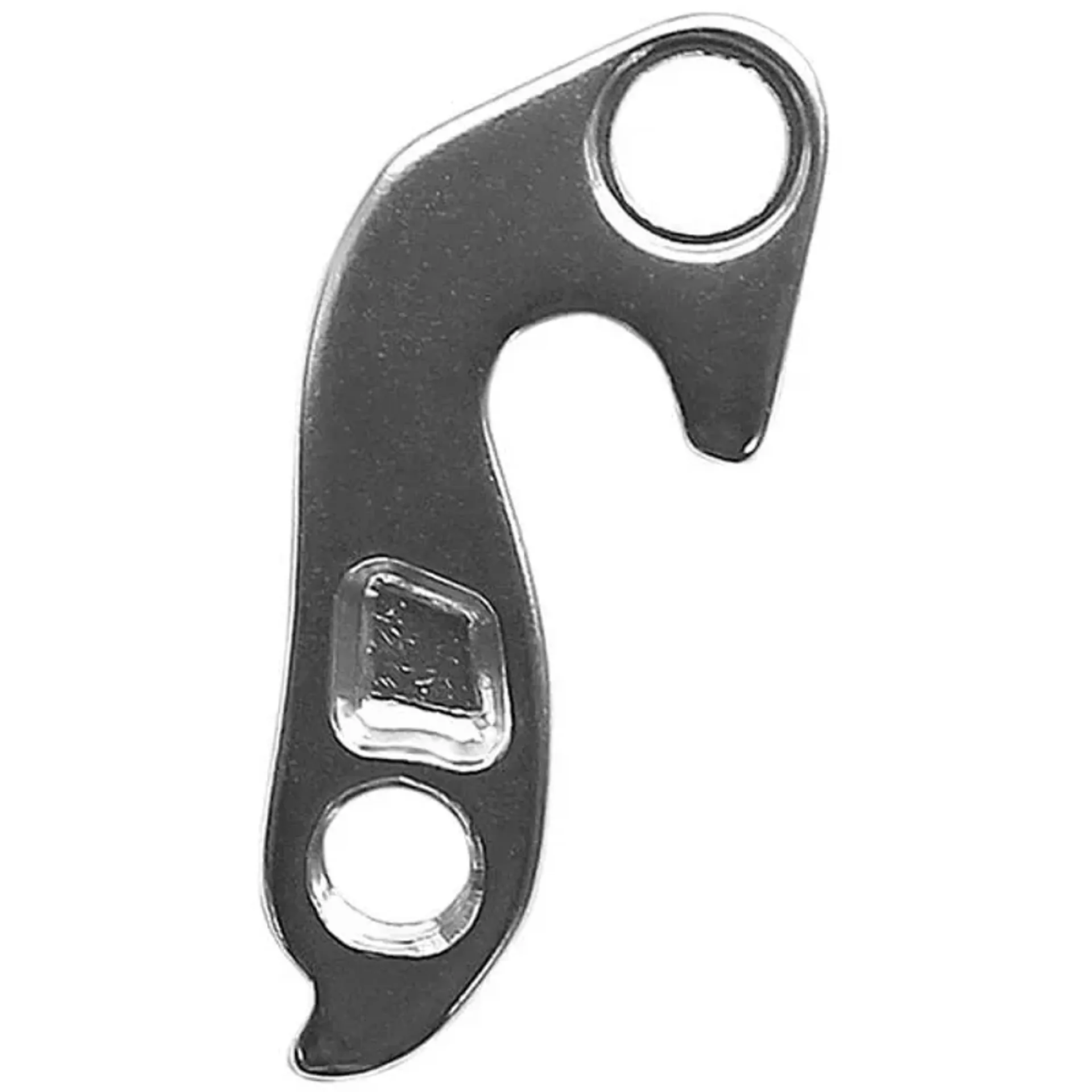 Bicycle gear hanger designed to bend or break on impact, preventing expensive frame damage.